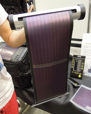 同社では、フレキシブルアモルファスソーラーパネルを巻き取り式にした製品も現在開発中だそうです。