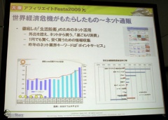 リンクシェアの大阪アフェリエイトFesta2009のセッションとして、リンクシェア・ジャパン社長 花崎茂晴氏による「不況に打ち克つ!アフィリエイト」が行なわれました。