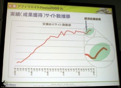 白書として、成果を獲得しているサイト数(実数は非公開)をグラフで示し、経済危機が起きた2008年7月〜9月頃は落ち込んだが、その後急成長していると説明した。