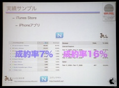 内容は、「アフィリエイトサミット2008:アルファブロガー対談」と、ほぼ同様の内容だったのですが、最後に、[N]ネタフル、[mi]みたいもん!の、iTunes Storeにおける実績サンプルを紹介していました。