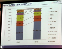 モバイル市場のカテゴリ別シェアで見てみると、特に総合通販系が積極的に取組んだことが見てとれると分析していました。