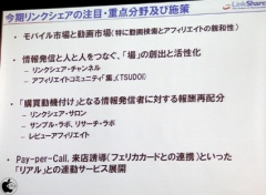 アフェリエイトの取組みに関しては、モバイル市場と動画市場に注力し、特に動画検索とアフィリエイトの親和性を重要視していると説明していました。