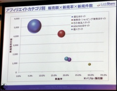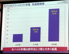 モバイルアフィリエイト市場は、223%と200%成長を達成し、流通額80億円となったと説明していました。