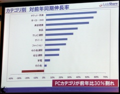 カテゴリ別の対前年同期伸長率でみると、PCカテゴリが30%ダウンしているが、それ以外のカテゴリは著しい成長率を見せていると説明していました。