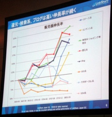 販売伸び率は、検索系、還元系、ブログ系が伸びているのに対し、SEO系、SEM系は減少傾向にある。キーワードリスリングの規制が影響している。コンテンツを重視したメディア系アフィリエイトの拡大も顕著だった。