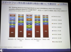 スマートフォンのOS別による商品購入金額の割りにつてを見てみると、iPhone、Google Androidユーザーは、パソコンから購入するような高額金額でも購入するユーザーが増えてきていることが分かったと説明していました。