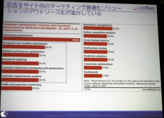 広告主サイト内のマーケティング最適化ソリューションを見てみると、アウトソース化を進める傾向が強くなってきたと説明していました。