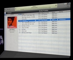 iTunes 8のデモで、Steve Jobs CEOが曲を迷わないように、予め5星のレートが打たれています。何気なく検索された結果のアルバムを適当に再生してるように見えますが、その検索結果の曲の中にも5星のレートが打たれていて、それを再生しています。