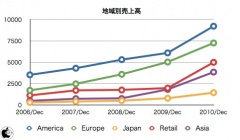 全体に成長していますが、特にApple Retail Storeの成長率は253%増の49億8700万ドル、アジア地域の成長率は212%増の38億4200万ドルとなり、Apple Retail Storeとアジア地域での成長率が大きいことが確認出来ます。