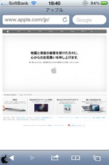 アップルが、トップページに東北地方太平洋沖地震の被害者へのお見舞いを掲載しています。