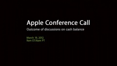 Appleが、2012年3月19日午前9時から、保有する現金に関するカンファレンスコールを行うと案内しています。