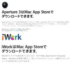 Appleが、Aperture 3トライアル版とiWork '09のトライアル版の配布を終了しています。