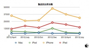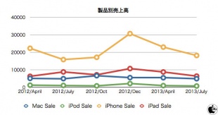 iPodの売上高は昨年同期よりも31%減となり、以前として減少傾向であることには変わりないようです。