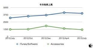 Apple Storeにおけるサードパーティ製アクセサリーの売上を加えたアクセサリーの売上は、昨年同期よりも4%減となっています。