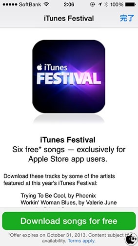 Apple、米Apple Storeアプリ内で、iTUnes Festival London 2013アプリと一緒に6曲無料ダウンロード配布を開始