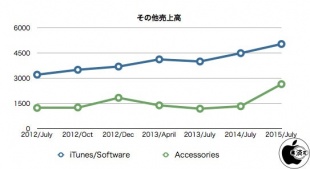 その他のiTunesとソフトウェアの売上は、AppleCareやApple Payライセンス料金などが含まれる「Services」という形式に変わっています。