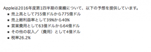 Appleは、2015年度第4四半期決算報告の中で、2016年度第1四半期の業績について、売上高として755億ドルから775億ドル、売上総利益率として39%から40%と予測していましたが、その予想範囲内に納まる結果となったようです。