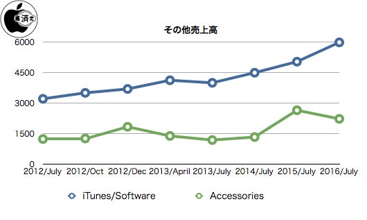 その他のiTunesとソフトウェアの売上は、AppleCareやApple Payライセンス料金などが含まれる「Services」という形式に変わっています。