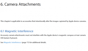 また、新しくカメラアクセサリーついての記載が追加され、磁石を使わないアクセサリーとするとの説明がされています。