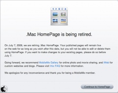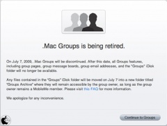 アップルが、2009年7月7日をもって、「.Mac HomePage」サービスと、「.Macグループ」を終了すると発表しています。