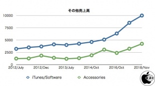 その他のiTunesとソフトウェアの売上は、AppleCareやApple Payライセンス料金などが含まれる「Services」という形式に変わっています。