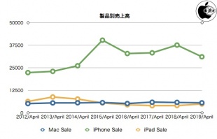 Apple、2019年度第2四半期決算報告を発表、昨年同期比で売上高5%減