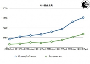 その他のiTunesとソフトウェアの売上は、AppleCareやApple Payライセンス料金などが含まれる「Services」は、昨年同期と比べて16%増となっています。