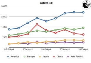Appleが、2020年度第2四半期の決算報告を発表しています。当四半期の売上高は583億ドル、純利益は112億ドル、希薄化後の1株当り利益は2.55ドル。前年同期の業績は、売上高が580億ドル、純利益は115億ドル、希薄化後の1株当り利益は2.46ドル、当四半期の米国市場以外の売上比率は62%だったと報告しています。