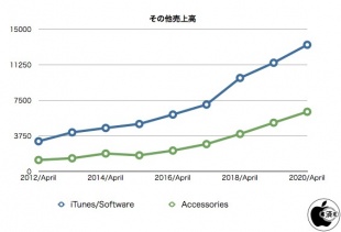その他のiTunesとソフトウェアの売上は、AppleCareやApple Payライセンス料金などが含まれる「Services」は、昨年同期と比べて16%増となっています。