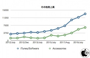 その他のiTunesとソフトウェアの売上は、AppleCareやApple Payライセンス料金などが含まれる「Services」は、昨年同期と比べて14%増となっています。