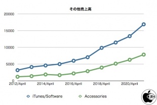 その他のiTunesとソフトウェアの売上は、AppleCareやApple Payライセンス料金などが含まれる「Services」は、昨年同期と比べて26%増となっています。
