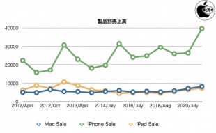 過去の同四半期と比較すると、Macintoshの場合、売上高は昨年同期と比べて16%増となり、Macの販売は好調なようです。