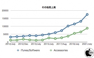 その他のiTunesとソフトウェアの売上は、AppleCareやApple Payライセンス料金などが含まれる「Services」は、昨年同期と比べて33%増となっています。