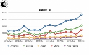 Appleが、2021年度第4四半期の決算報告を発表しています。当四半期の売上高は834億ドル、純利益は205億ドル、希薄化後の1株当り利益は1.24ドル。前年同期の業績は、売上高が647億ドル、純利益は126億ドル、希薄化後の1株当り利益は0.73ドルでした。当四半期の米国市場以外の売上比率は66%だったと報告しています。