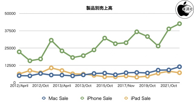 iPhoneの売上高は昨年同期と比べて9%増となり、iPadの売上高は昨年同期と比べて14%減となっています。