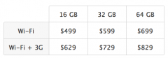 3G回線込みの場合、250MBデータ制限付きは月額14.99ドル、無制限は月額29.99ドルでAT&Tと契約することが可能で、iPadはアンロックSIM仕様で、海外向けのプランは6月頃に案内する予定だそうです。
