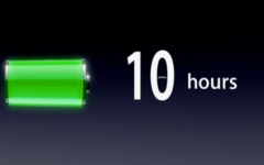 iPadのバッテリー連続使用時間を示すスライドで、10の文字が縦にバウンドして表示されます。