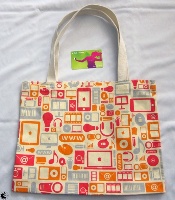 2010年12月04日にヤマダ電機テックランド星ヶ丘店に出来た「Appleショップ」のオープンイベントに行って、先着で配布された「Apple特製エコバッグ」(非売品)を貰えました。