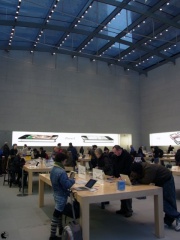 地上部は 普通の建物であれば 3階分に相当するようなガラス製の吹き抜けとなっており、ここには CPU を展示。ガラスの階段を使って地下に下りると更に1フロアのエリアが有り、こちらではソフトウェア・周辺機器が置かれているだけでなく、Genius Bar・Studio なども設置されています。