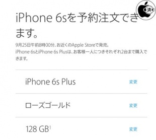 Apple Storeが、iPhone 6s・iPhone 6s Plusの店頭販売を、2015年9月25日午前8時より実施すると案内しています。
