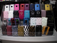 また、iPhoneケースなどは、サンプルが用意されていて、実際に装着して試すことが出来るようになっていました。