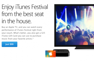 Appleが、アメリカ、ヨーロッパ、オーストラリアなど一部地域で、Apple TV (3rd generation)を購入すると25ドル分のiTunes Giftカードが貰える「Enjoy iTunes Festival form the best seat in the house」キャンペーンを開始しています。