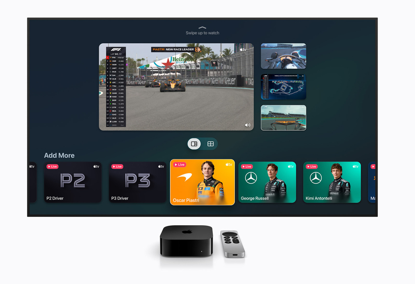 視聴者はマルチビュー エクスペリエンスを使用して、最大4つのライブ フィードを同時に視聴しながら、レースのあらゆる瞬間を追うことができます。