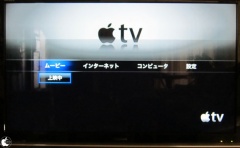 Apple TV (2nd generation)を日本語モードで利用した場合、メニューには「ムービー」「インターネット」「コンピュータ」「設定」の項目が表示されます。