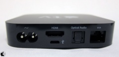 背面には、Apple TV (1st generation)と同じ形状の電源コネクター、標準サイズのHDMI端子、光オーディオ出力端子、イーサネット端子、のMicro-USB端子(保守サービス用)が用意されています。