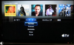 Apple TV (1st generation)では、「ムービー」「テレビ番組」「ミュージック」「Podcast」「写真」「Internet」「設定」という項目が表示されていました。