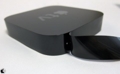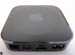 Apple TV (2nd generation)の側面には、光沢処理されたプラスチック面を保護するために、黒いフィルムが撒かれています。