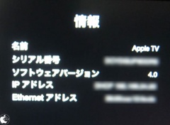 Apple TVのシステムは、iOS 4.1ベースだと言われていますが、表記は4.0だということが確認出来ます。