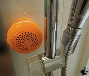 1メートル以下の水中であれば最低30分は防水耐性があるそうなので、iPhone 5s本体をお風呂場の外に置き、Tough Speakerをお風呂場の壁などに吸着させて、楽曲を楽しんだり、語学リスニング学習したりといった利用も可能です。