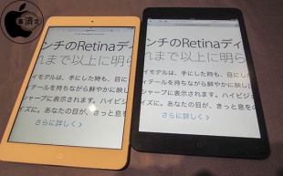 iPad miniとiPad mini Retinaとを並べて比べてみました。